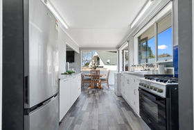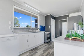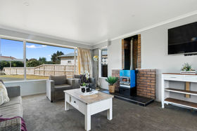 Offering: Four bedrooms,a tidy kitchen/dining,a good sized lounge,modern bathroom - with both a bath and a shower, and a separate laundry. The carpet and vinyl are brand new, the wood burner and heat transfer are fairly new, the master bedroom has its own heat pump. The deck off the dining area leads to the fully fenced rear section which the kitchen overlooks so you can watch the children play.
