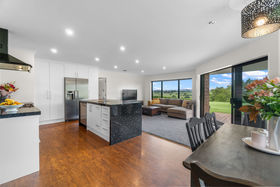 Built in 2010, the home has been designed with everyday living in mind. Light pours through the open plan spaces, all centred around a thoughtfully positioned kitchen that brings everyone together. With quality appliances, great storage and clean modern finishes, it is both practical and welcoming. Spanning 205sqm (more or less), the layout provides three generous bedrooms plus an office or optional fourth bedroom, giving flexibility for growing families or those working from home. The master enjoys its own ensuite, while the family bathroom with separate toilet keeps busy mornings running smoothly. Living spaces open effortlessly to a covered deck, where morning coffees and evening unwinding are framed by uninterrupted rural outlooks. Brand new carpet underfoot, double glazing, a heat pump and ventilation system ensure the home feels as comfortable as it is inviting. Internal double garaging is complemented by a separate garage or workshop, with a near new concrete driveway and ample off street parking adding to the ease of everyday life.